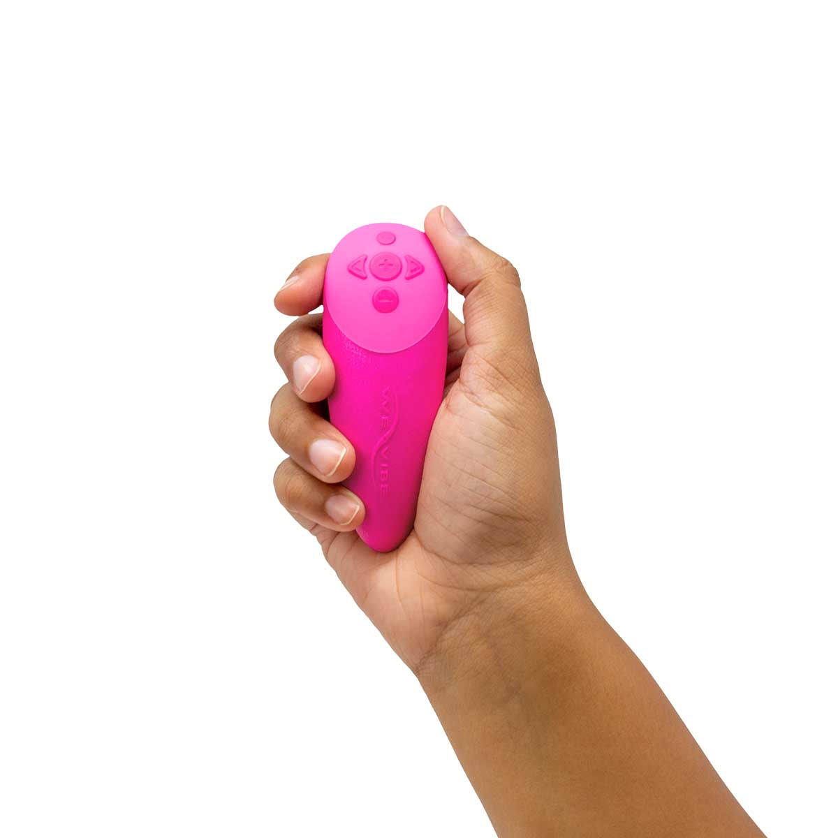 The We-Vibe Chorus also features unique touch-sensitive receptors located beneath the We-Vibe logo. As you play, your movements control the vibrations. Connect the remote to the We-Connect app, or simply use the remote and toy together.